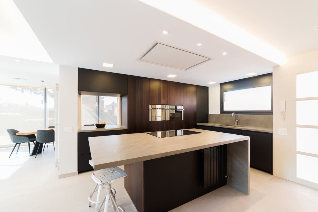 La premisa era clara desde el principio: fusionar espacios para crear un ambiente más fluido y luminoso. Con este objetivo en mente, nos embarcamos en la tarea de integrar la cocina y la sala de estar, mientras expandíamos el comedor hacia el jardín con un moderno cerramiento de aluminio.